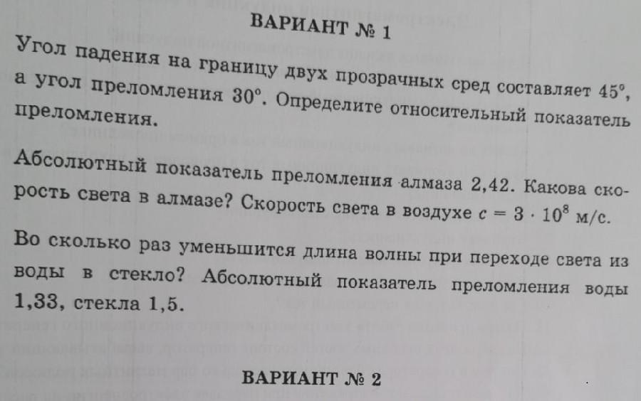Абсолютный показатель преломления равен отношению скорости света в вакууме к скорости света
