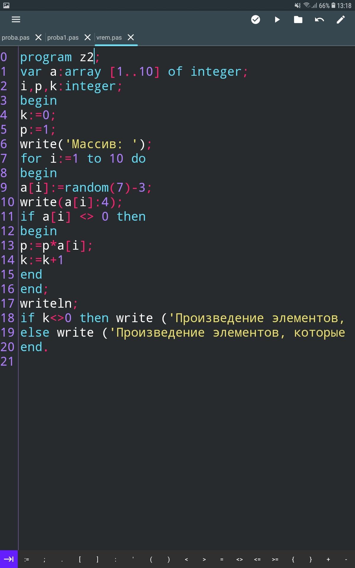 else write ('Произведение элементов, которые не равняются 0, равно 0')