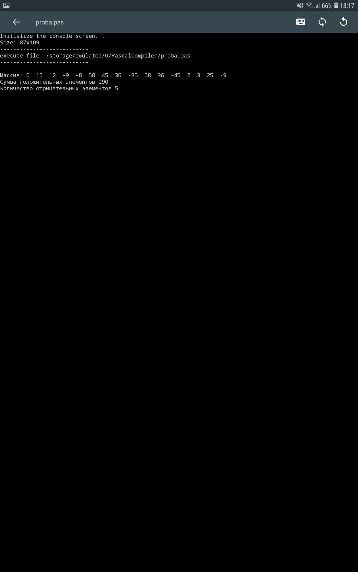 Найти сумму положительных и количество отрицательных элементов в одномерном массиве: 0; 15; 12; –9; –8; 58; 45; 36; –85; 58; 36; –45; 2; 3; 25; –9.