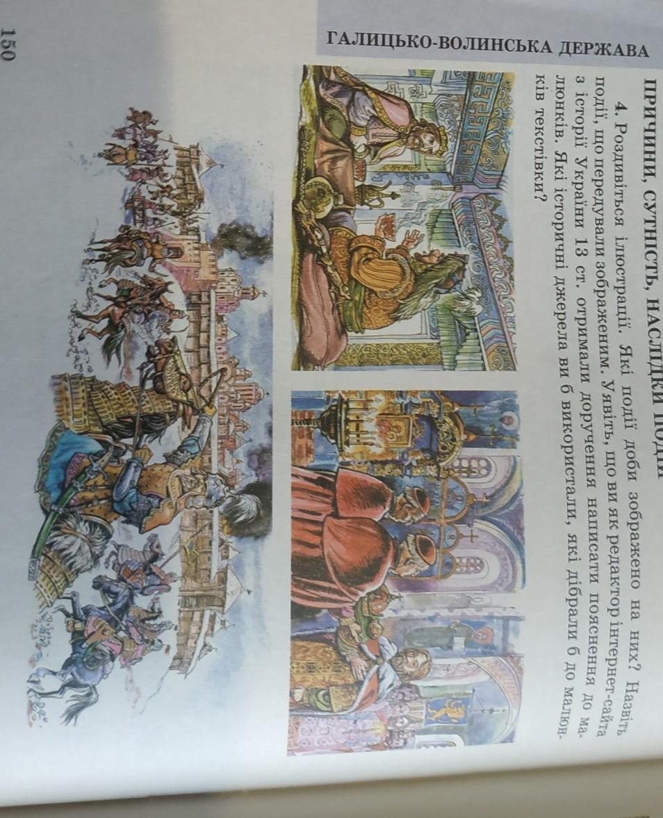 Роздивіться ілюстрації. Які події доби зображено на них? Назвіть події, що передували зображеним. Уявіть, що ви як редактор інтернет.сь з історії України 13 ст. отримали доручення написати пояснення люнків. Які історичні джерела ви б використали, які дібрали бло, кiв текстівки?