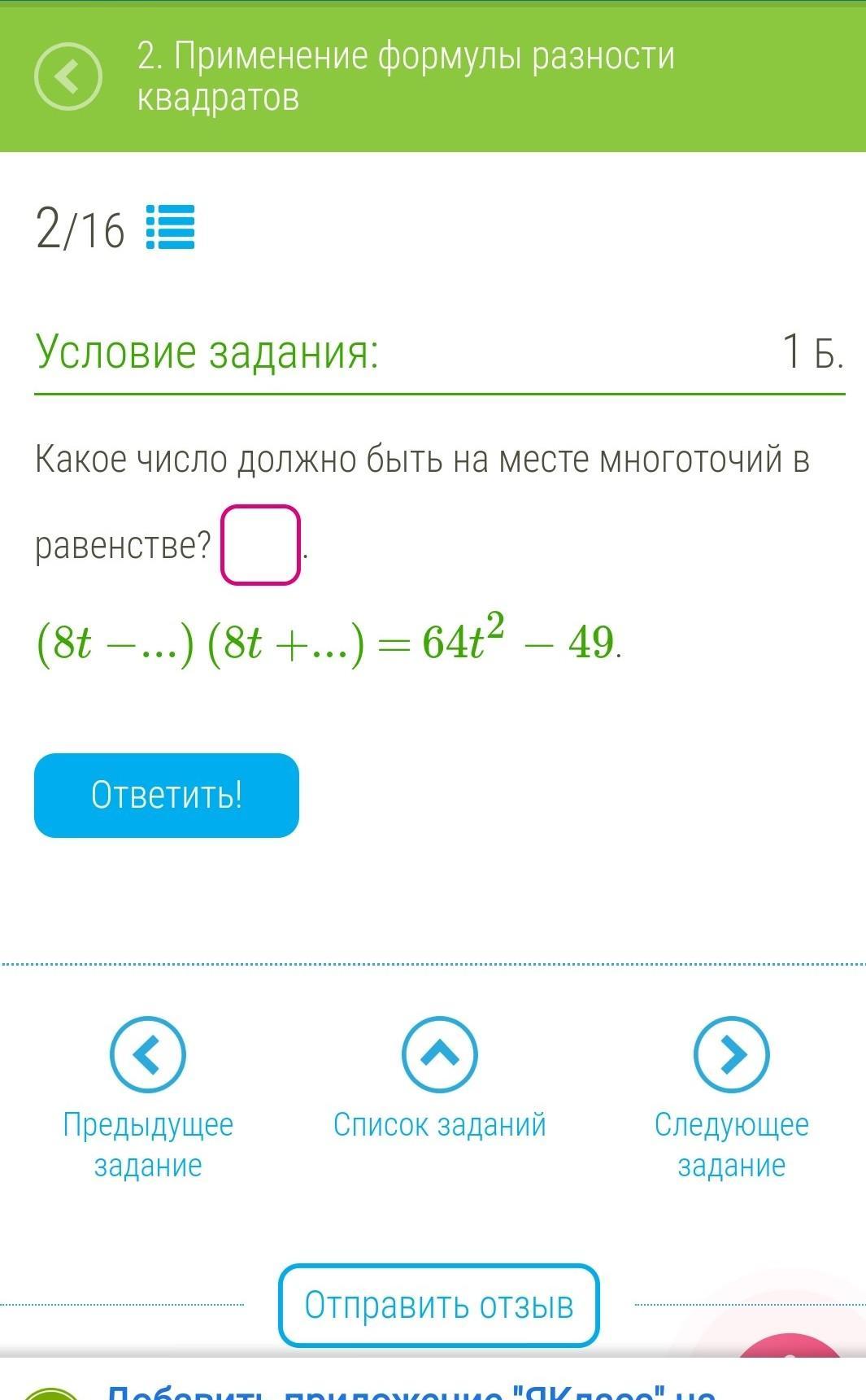 Объяснение: 64t²-49 = (8t-7)(8t+7)
