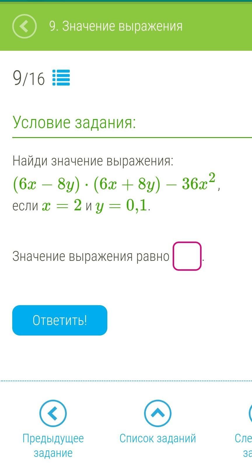 = 36х²-64у²-36х² = -64у² = -64*0,1² = -64*0,01 = -0,64