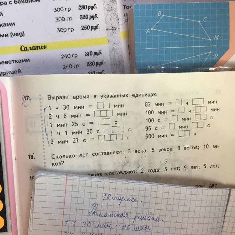 1 час 30 минут =90 минут 2 часа 6 минут =126 минут 1 минута 25 секунд =85 секунд. 1 час 1 минута 30 секунд = 3690 секунд 3 минуты 27 секунд =207 секунд. 82 минуты = 1 час 22 минуты. 100 минут = 1 час 40 минут. 100 секунд = 1 минута 40 секунд. 96 секунд = 1 минута 36 секунд. 600 минут = 10 часов.