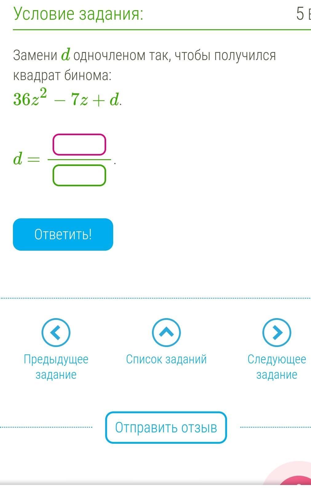 Объяснение: (6z)² - 2*6z* 7/12 + (7/12)²