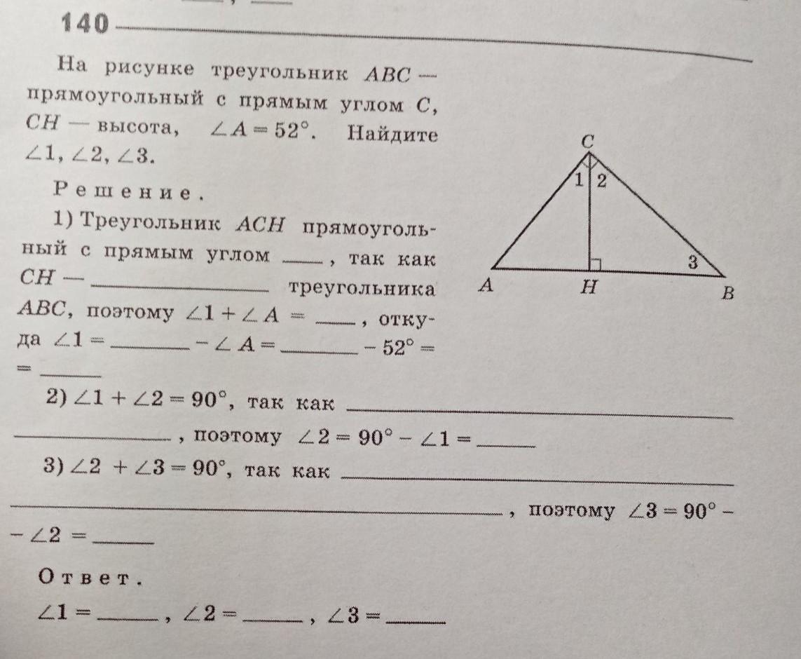 если угол 2 равен 52 а угол СНВ равен 90 то угол 3 = 180-(90+52)