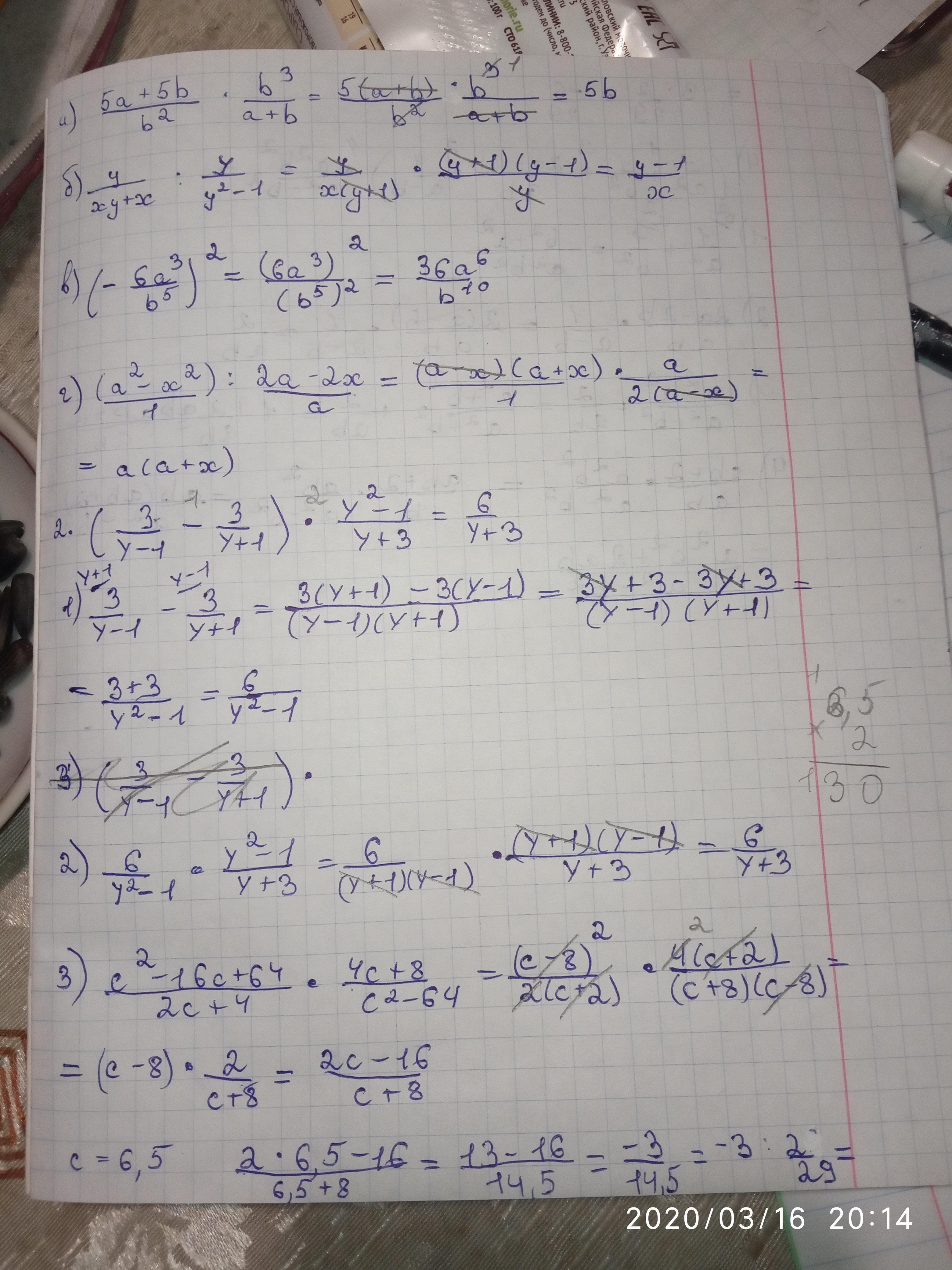г) деление заменяем на умножение, разница квадратов - на произведение, выносим общий множитель за скобки.