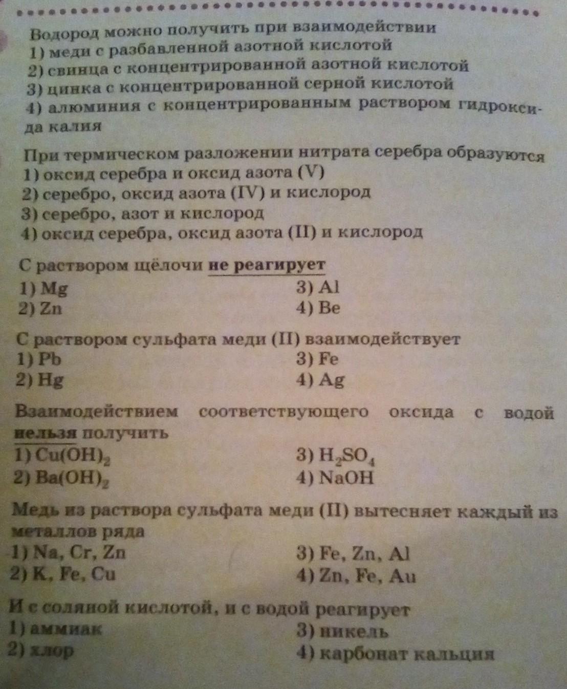 с раствором щелочи не реагирует - Mg; взаимодействием соответствующего оксида с водой нельзя получить - 1)