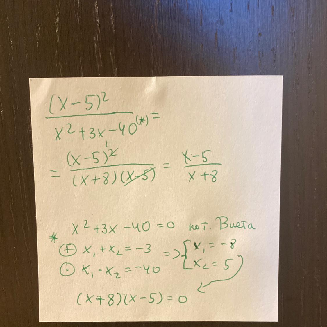 Привет! Тут вообщем надо было найти корни знаменателя и упростить.