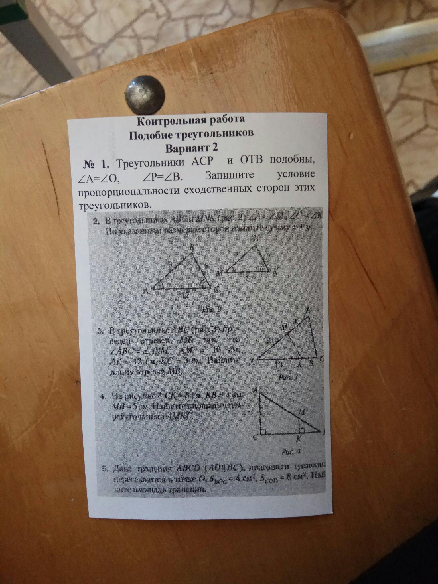 Так как 2 угла равны третий угол тоже равен. Выходит треугольники подобные.