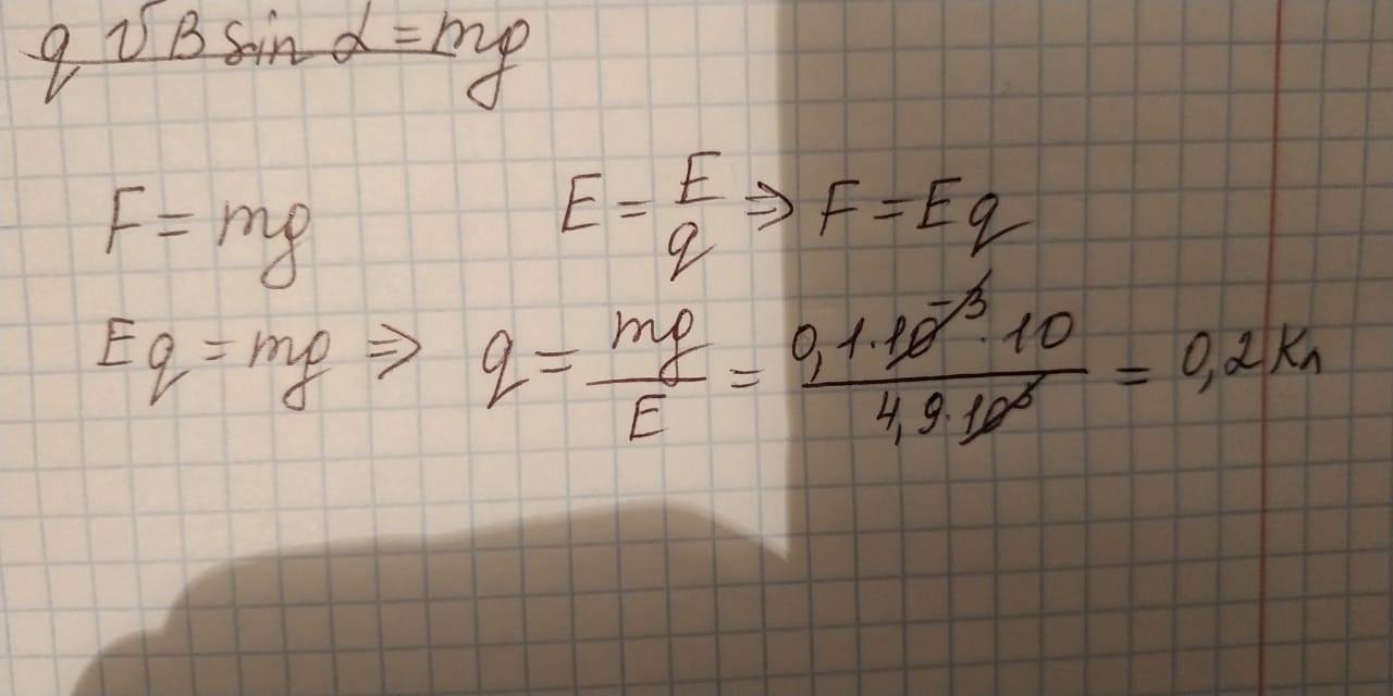 Каким зарядом должна обладать частица массой m=0.1г что бы в электрическом поле напряженностью Е=4.9кВ/м ускорение, приобретаемое ею под действием поля, было равно ускорение свободного падения вблизи поверхности земли? Задача номер 5