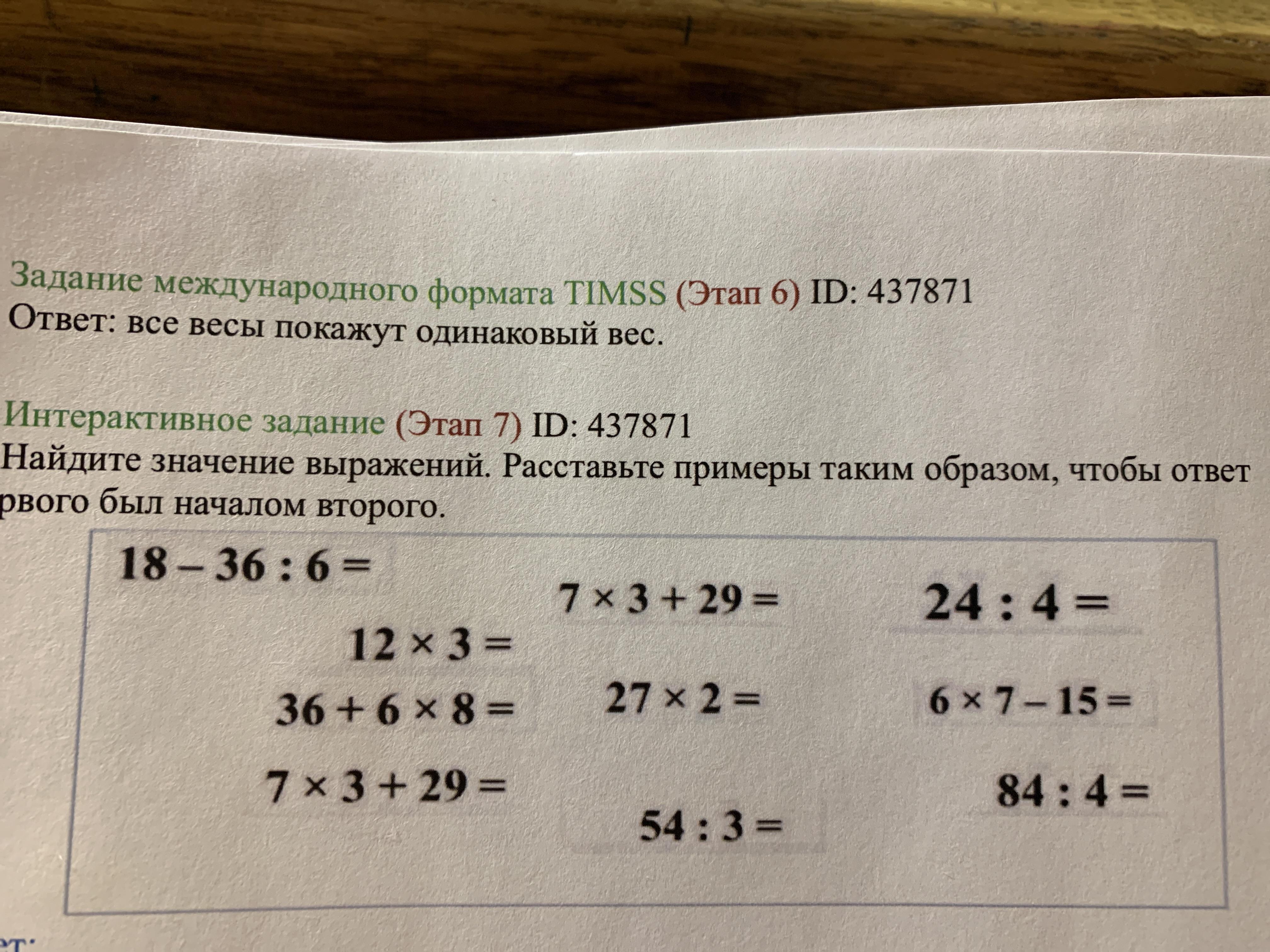 Найдите значение выражений расставьте примеры таким образом чтобы ответ первый был началом второго