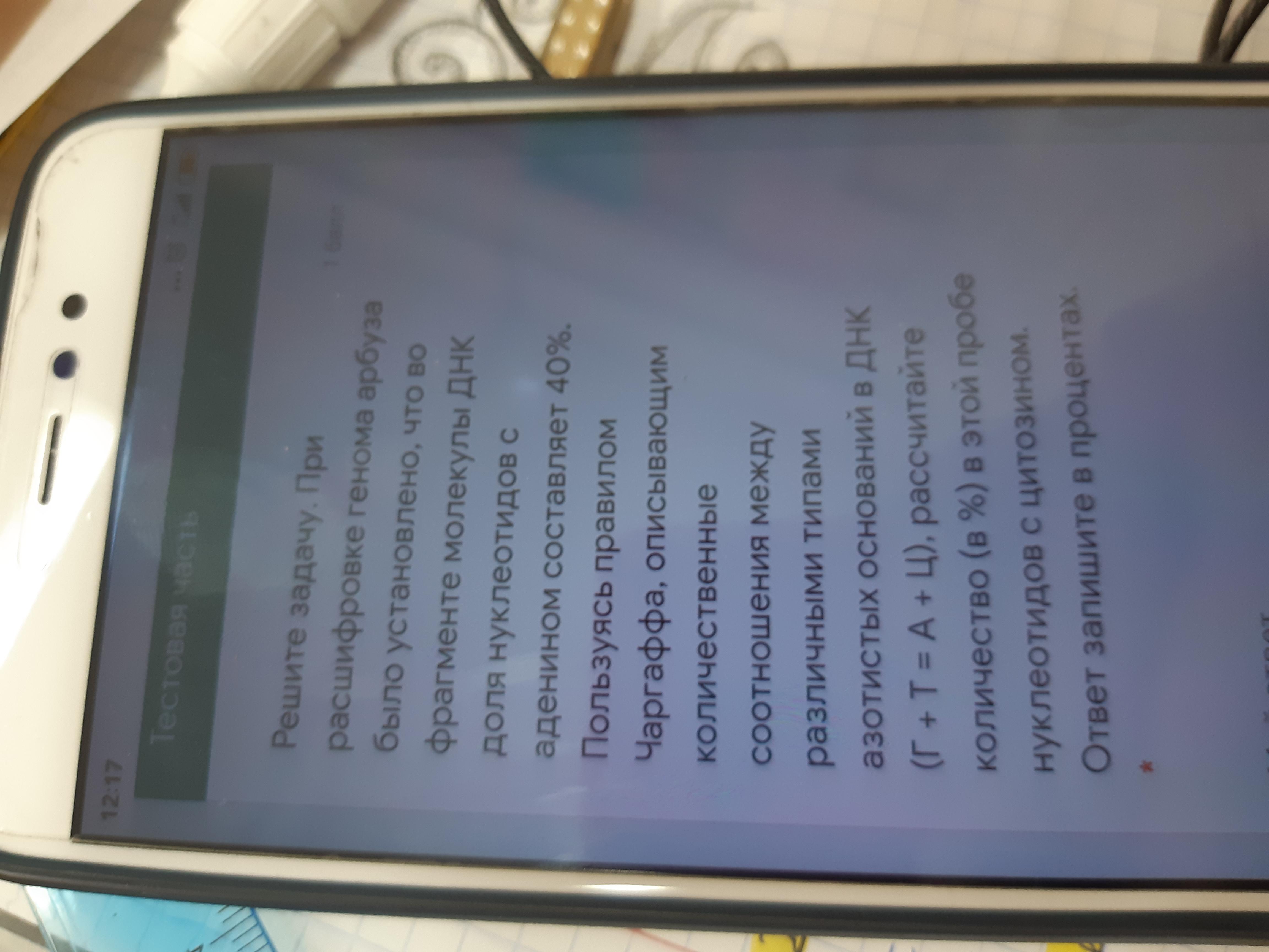 Если алениловых нуклеотидов 40%, то и тимидиловых также, отнимим от 100 их сумму и получим 20 - сумму гуанила и цитозина. Делим на 2 и получаем искомое.
