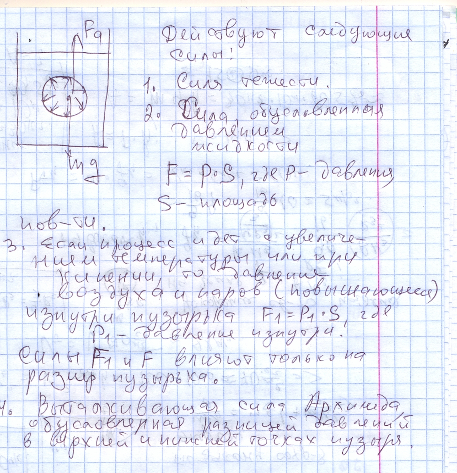 какие силы действуют на пузырек воздуха наполненный паром когда он находится внутри жидкости
