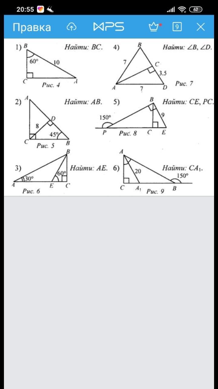 1) ∠А=90-60=30°, значит ВС=0,5АВ=10:2=5.