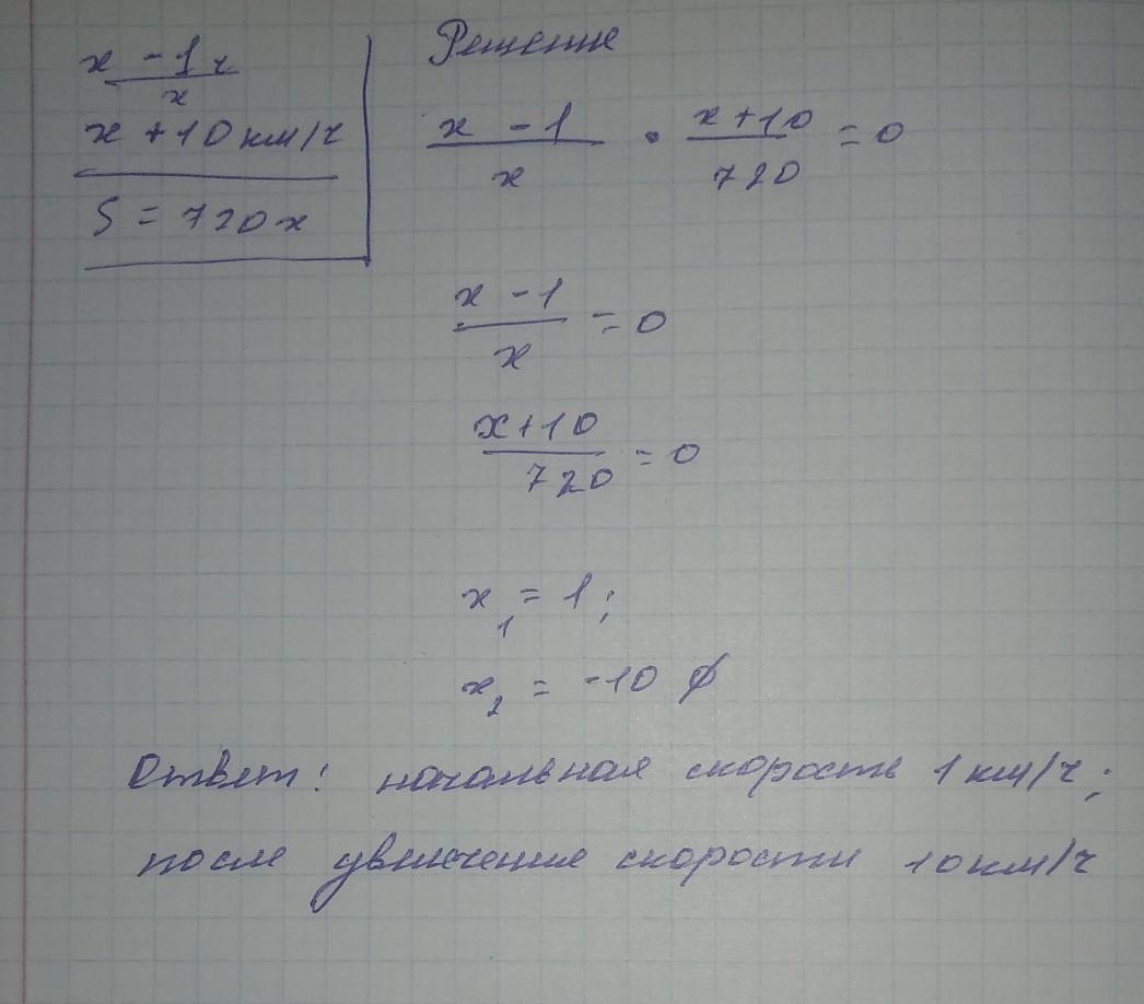 Поезд опаздывал на 1 час, чтобы приехать вовремя, увеличил скорость на 10 км/ч на перегоне в 720км. Найти скорость поезда по расписанию.