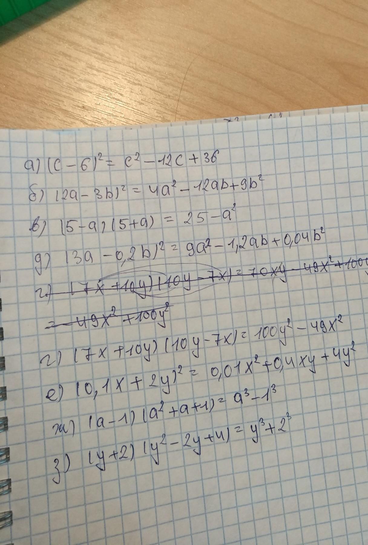 д) (3a-0,2b)²=9a²-1,2ab+0,4b²