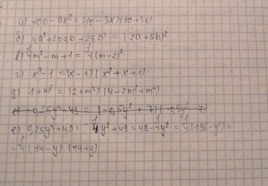 е) -0,25y⁴+49=1/4(14-y²)(14+y²)
