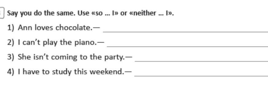 В отрицательной форме употребляй Neither и дальше ищи вспомогательный глагол и местоимение после глагола.