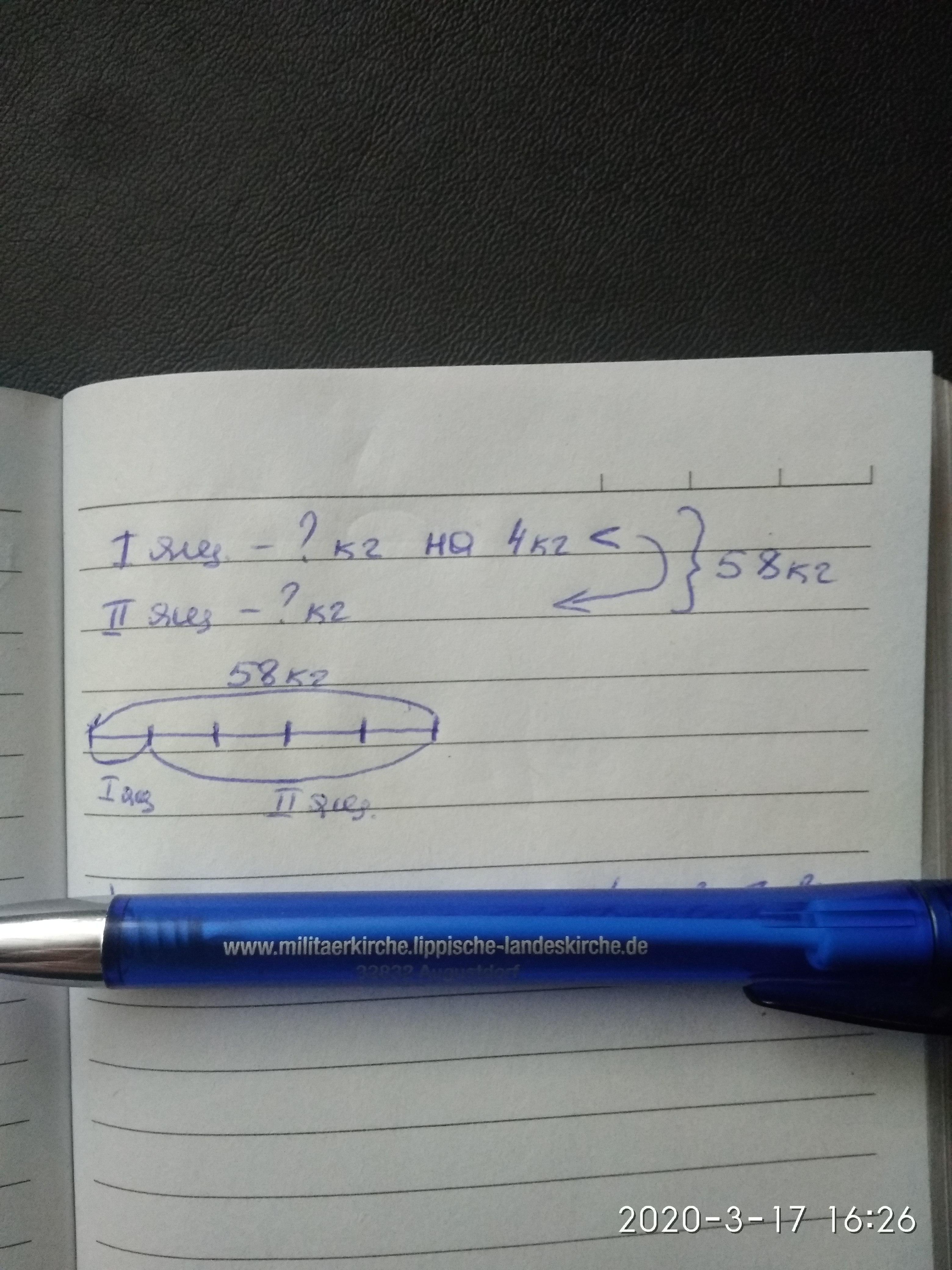 Так как в одном из ящиков в четыре килограмма больше, то 58 килограмм условно делим на 5 частей (смотреть рисунок)