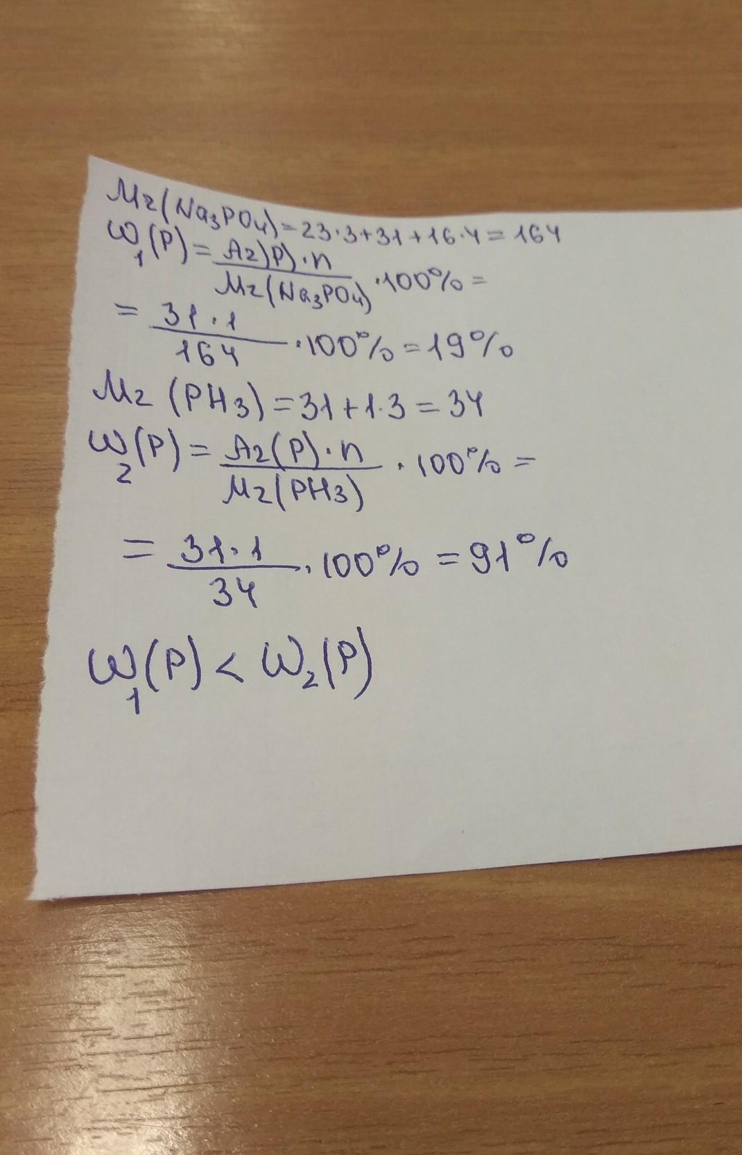 определите массовую долю фосфора в фосфате натрия и в фосфине. где больше фосфора??