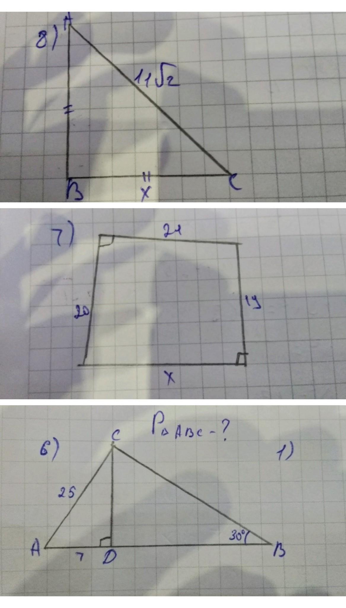 6) CD²=AC²-AD²=25²-7²=625-49=576⇒CD=24
