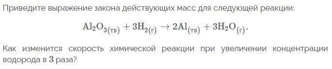 При увеличении концентрации водорода в три раза скорость реакции увеличится в 27 раз т.к концентрация водорода стоит в кубе
