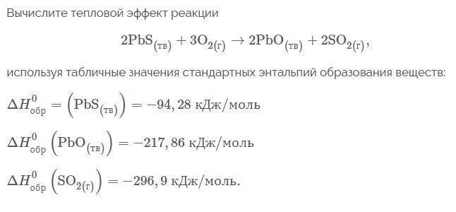 ΔH(реакции)=ΔH(PbO)*2+ΔH(SO2)*2-ΔH(PbS)*2