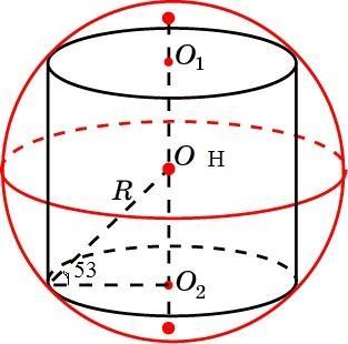 В шар вписан цилиндр, диагональ осевого сечения которого наклонена к плоскости основания под углом 53 градуса.