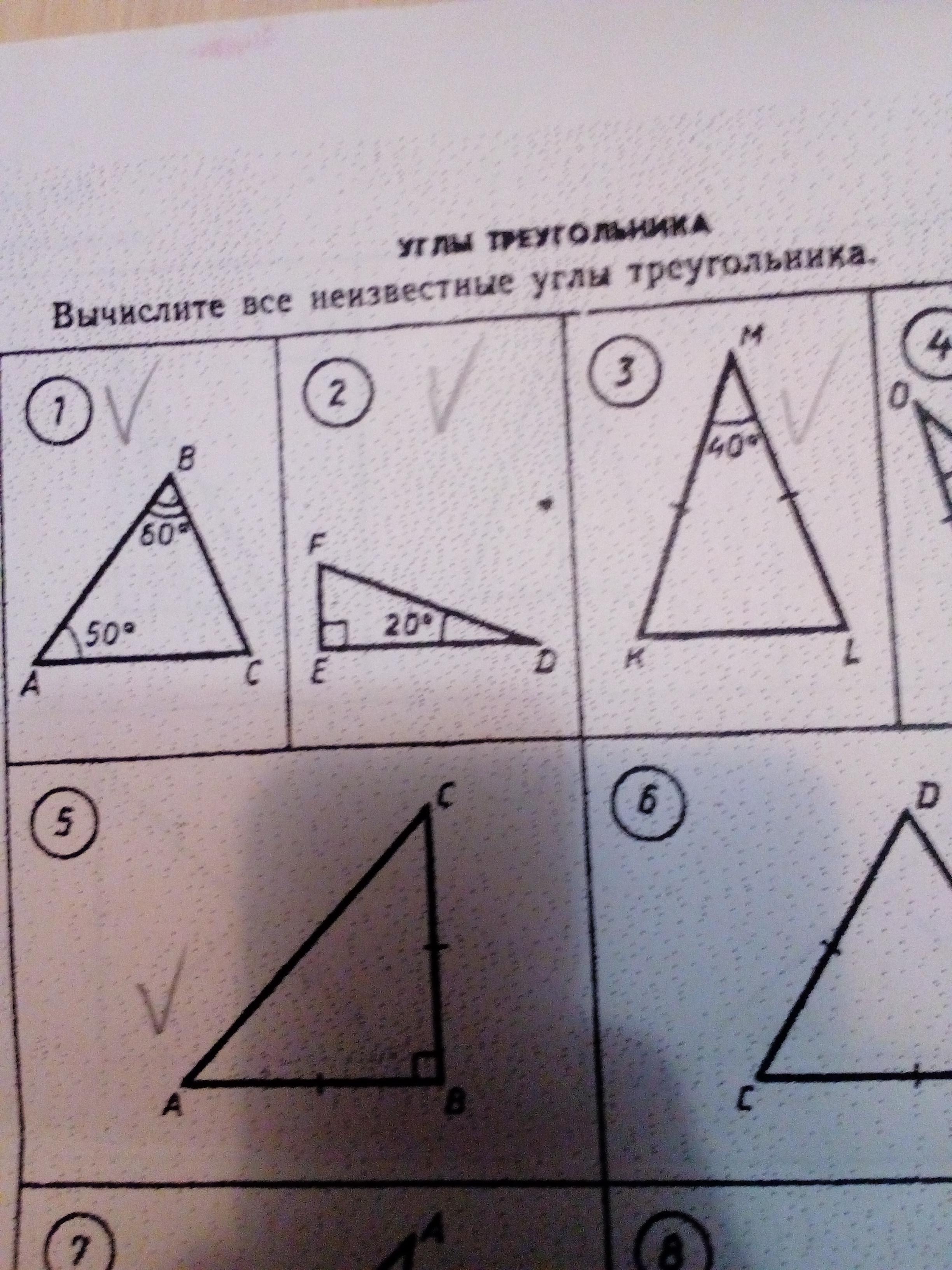 2) Е - прямой угол, значит равен 90°, F=180°-(E+D)=180°-(90°+20°)=180°-110°=70°;