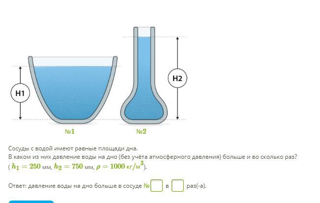 P2/P1=p*g*h2/p*g*h1=h2/h1=0,75/0,25= в три раза давление во втором сосуде больше