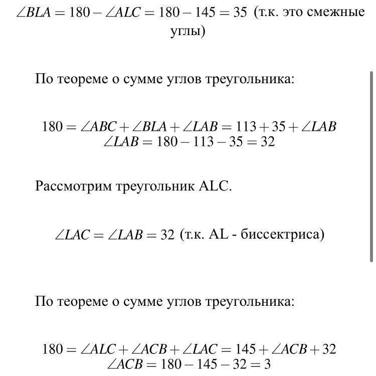 В треугольнике ABC проведена биссектриса AL. Угол ABC равен 100°, угол ALC равен 135°. Найдите угол BAC.