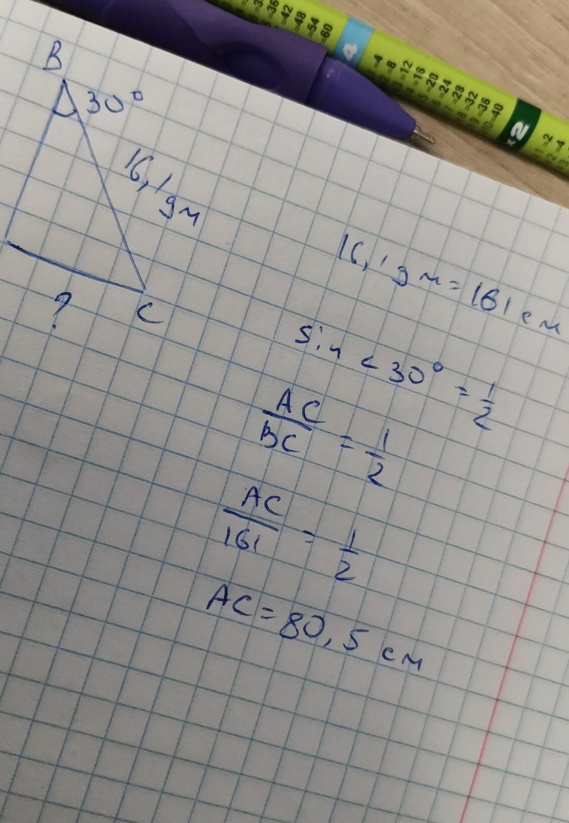 Дан прямоугольный треугольник АВС. Известно, что гипотенуза равна 16,1 дм и <СВА= 30°.