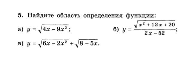 b) y= Корень (6x-2x^2) + корень (8-5x)