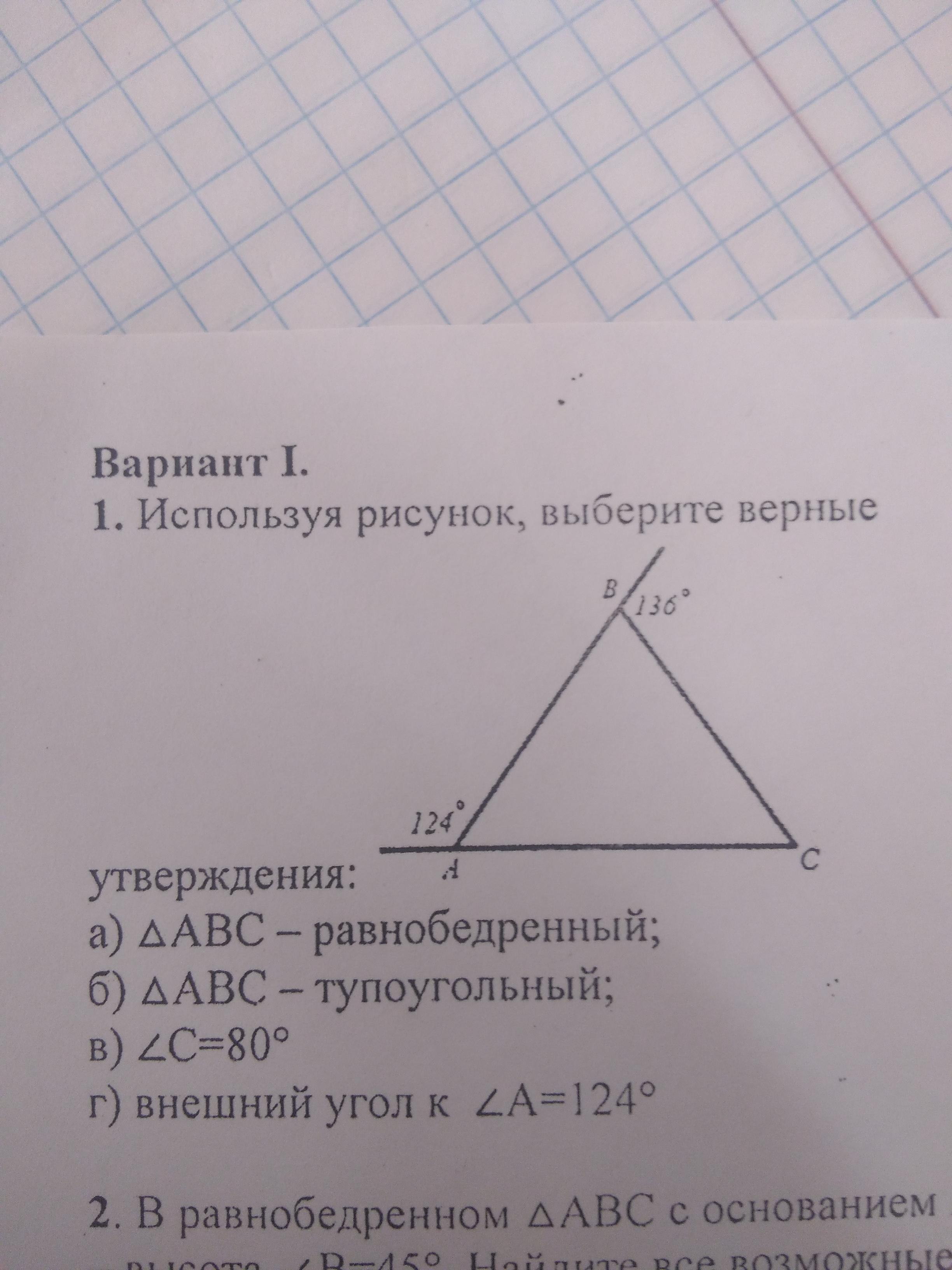 внешний угол к углу А - угол ВАС =54 градусов