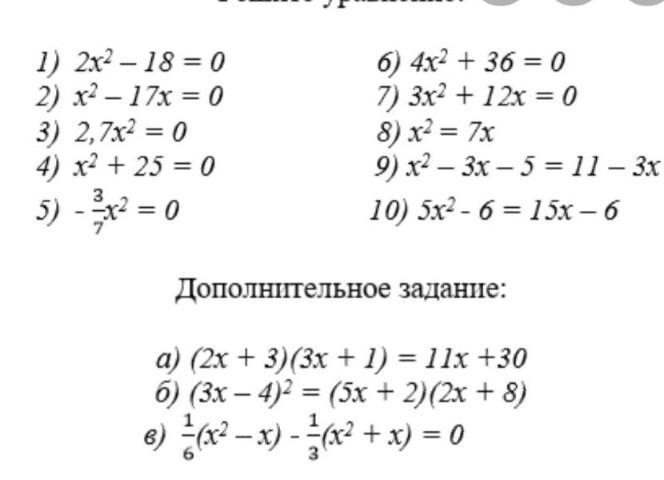 8)x^2-7x=0, x(x-7)=0, x=0, x-7=0, x=7