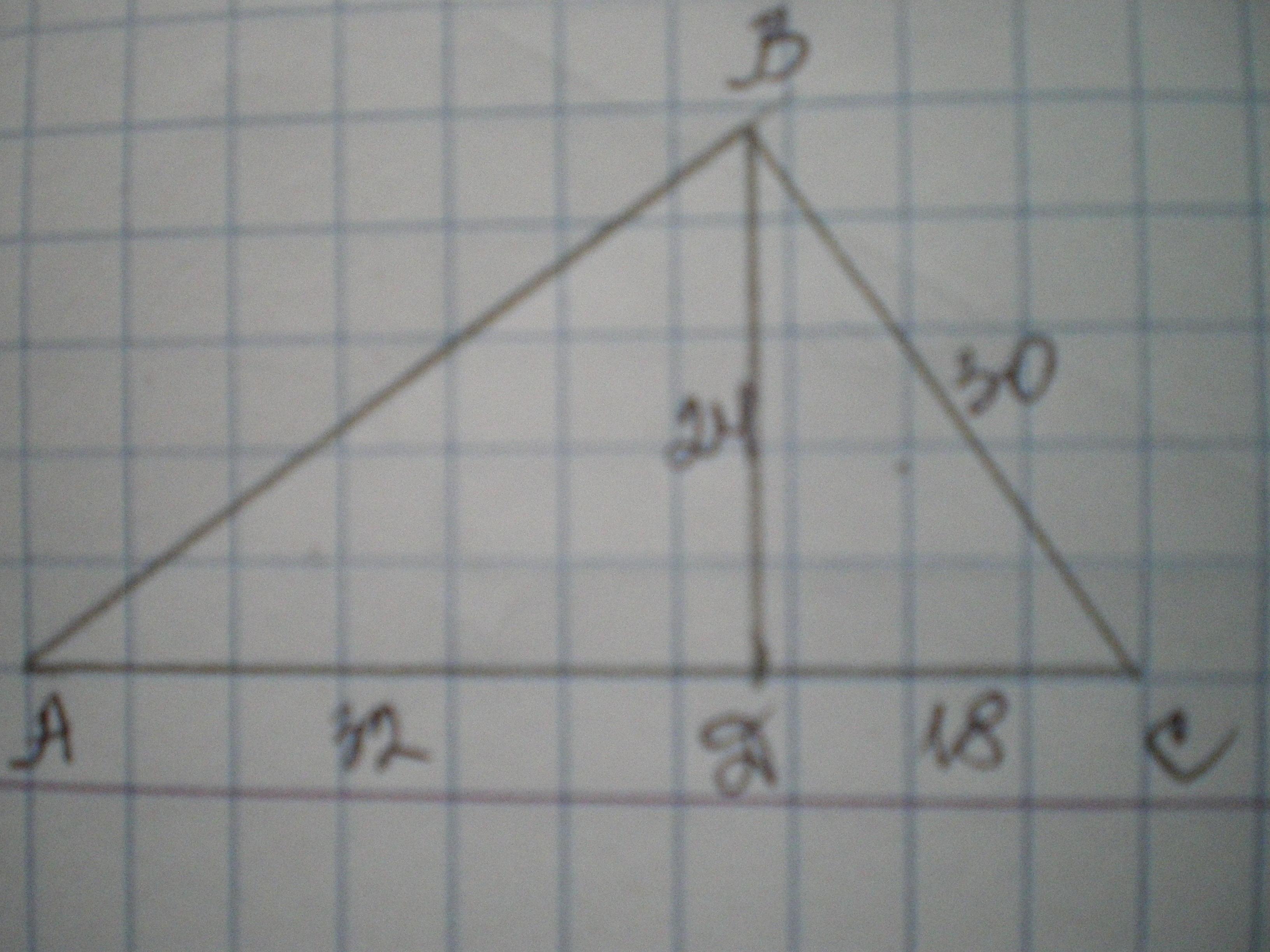 ВС=√(ВD²+BC²)=√(576+324)=√900=30.