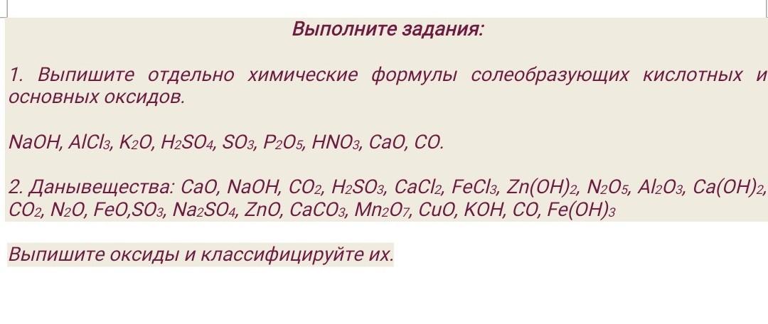 солеобразующие кислотные CO2, SO3, Mn2O7, N2O5