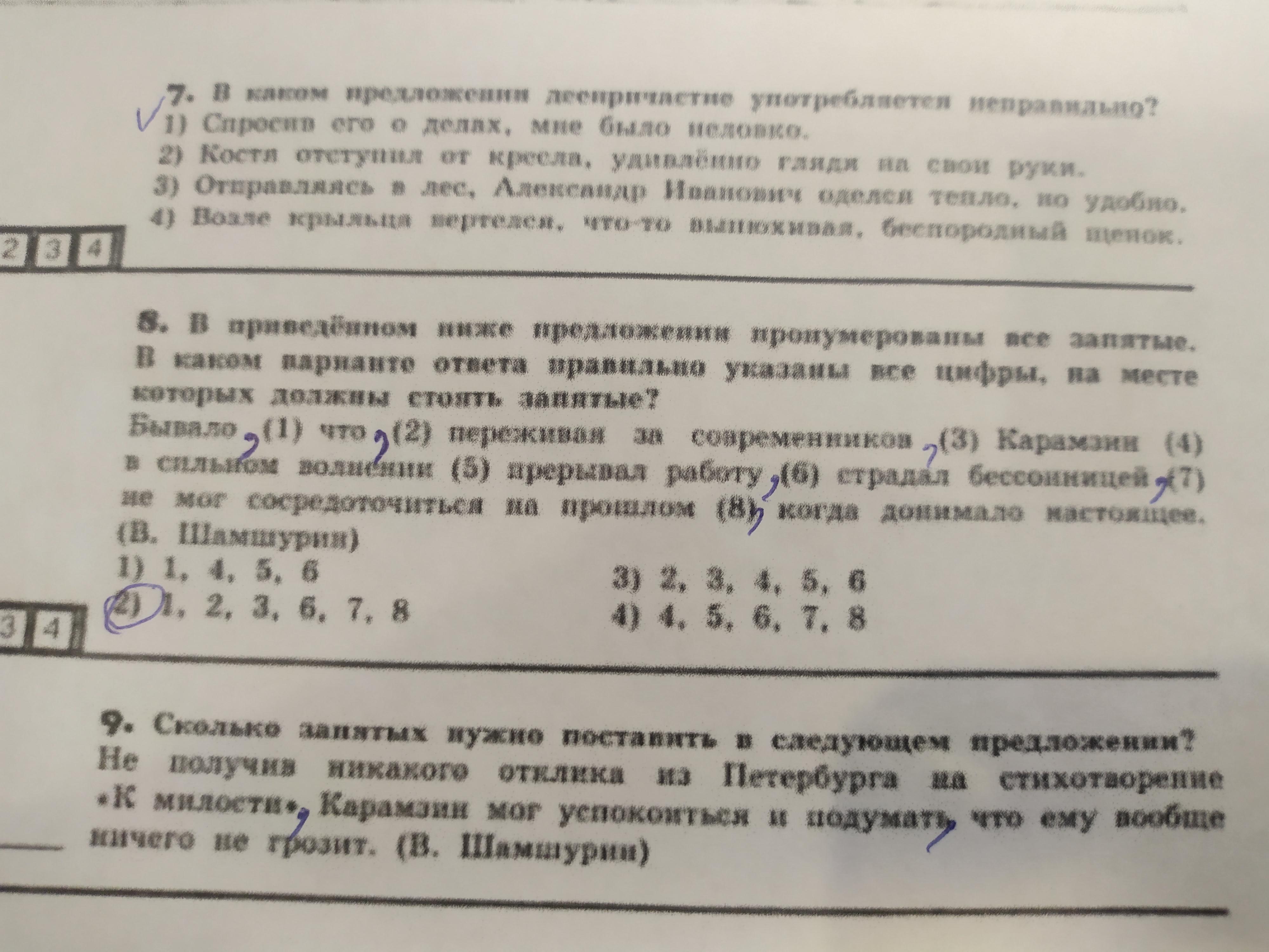 В 8, 1 правильно всегда так как Бывало - вставное слово => 3 и 4 - неправильно, 4 - неправильно в любом случае => правильно 2 как на картине. в 9 нужно 2 запятых, 1 после "К милости" так как это сложное предложение, а 2 перед "что" так как перед, что всегда запятая
