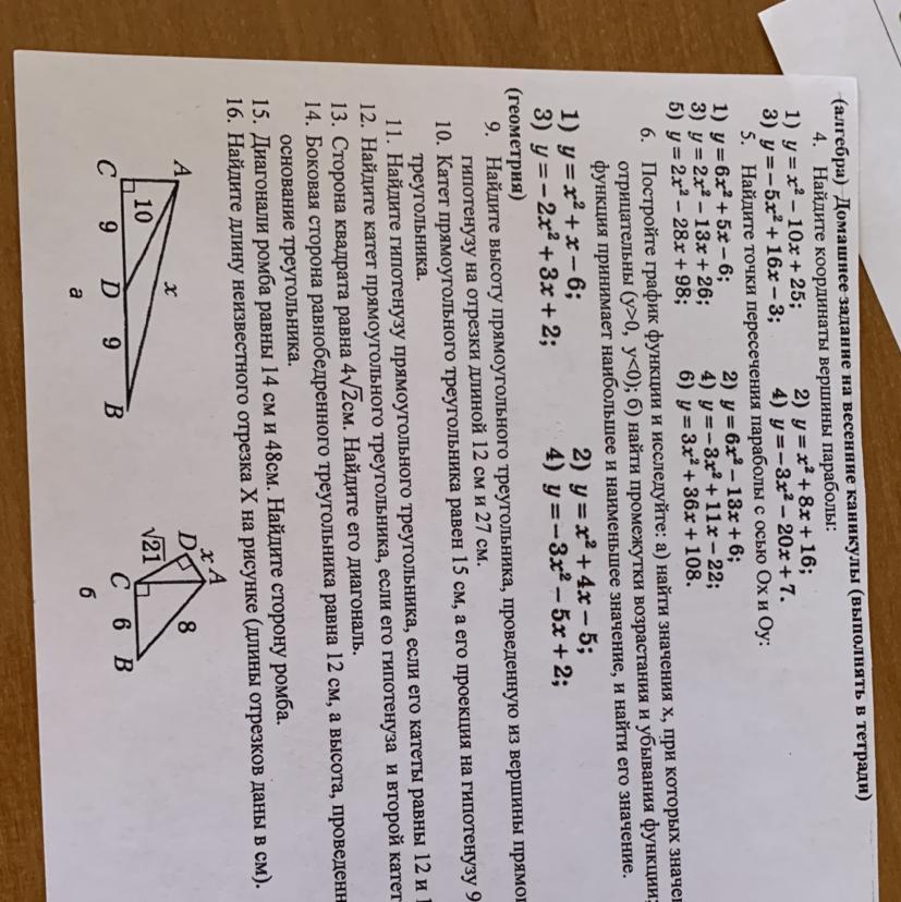 тр.АСД, AC^2=AD^2-CD^2=100-81=19, тр. ACB, x^2=CB^2+AC^2=324+19=