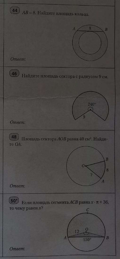 #44. АВ=8. Найдите площадь кольца