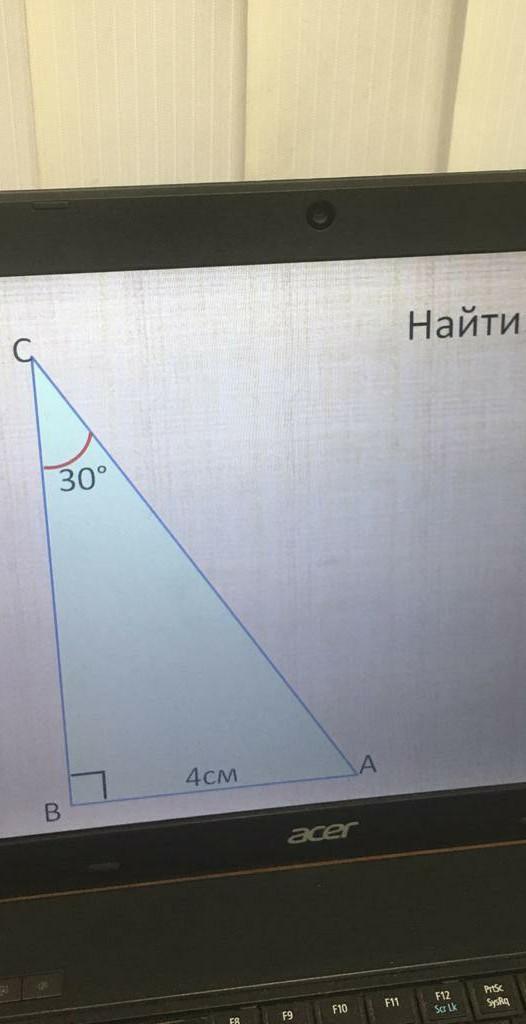 Воспользуемся теоремой: катет, лежащий напротив угла в 30 градусов равен половине гипотенузы. Следовательно, зная катет АВ, делаем АС = 2 АВ = 2*4 = 8 см