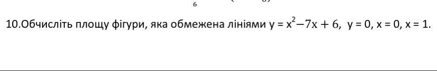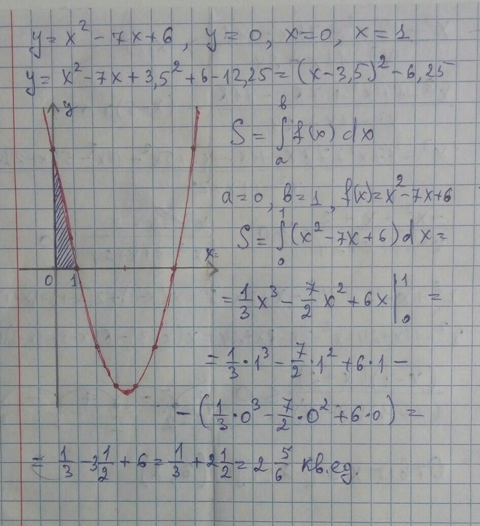 Рус: Вычислите площадь фигуры, ограниченной линиями y = x^2 -7x + 6, y = 0, x = 0, x = 1.