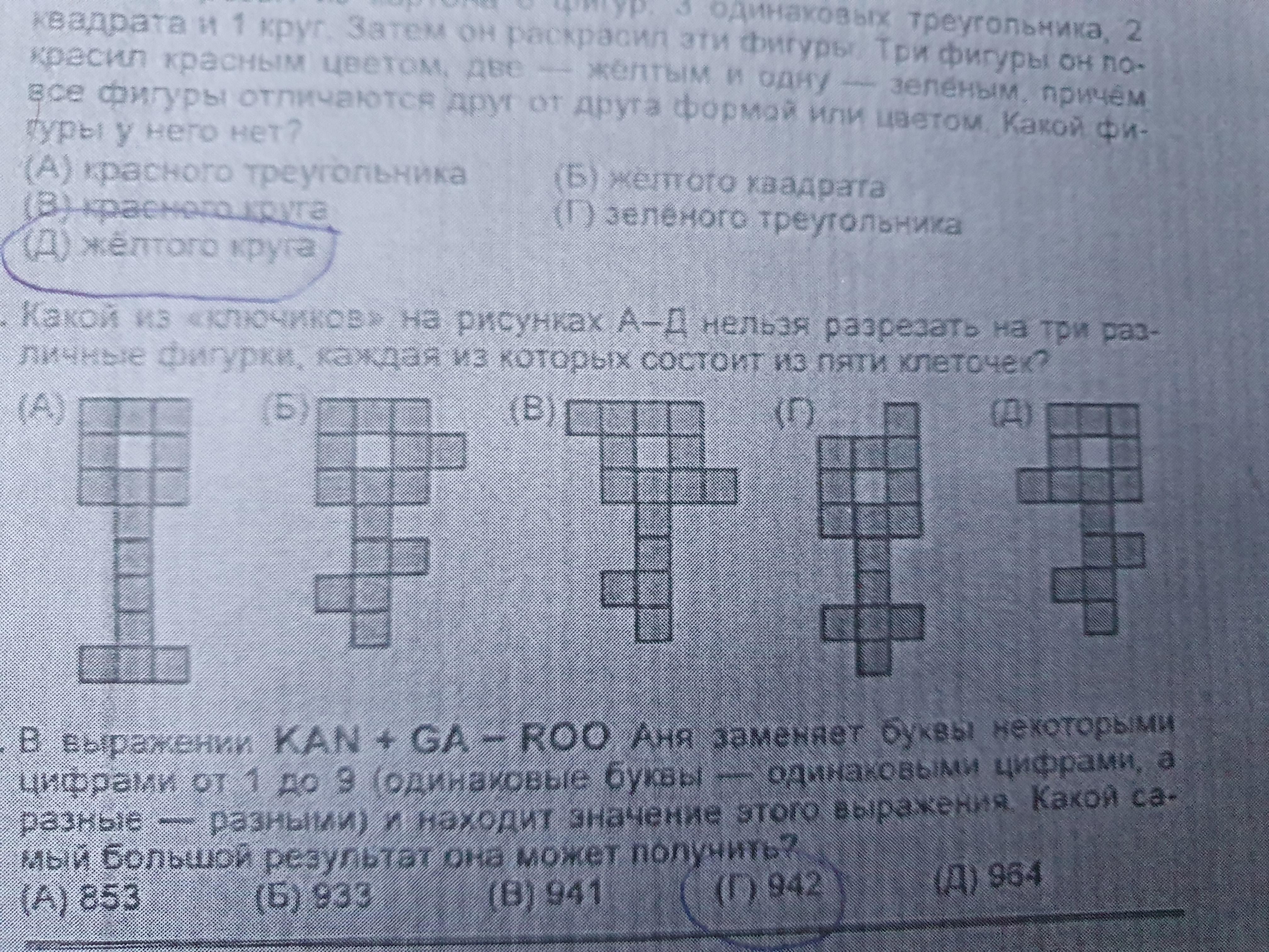 Какой из ключиков на рисунке нельзя разрезать на три различные фигурки ,каждая из которых состоит из 5 ленточек?