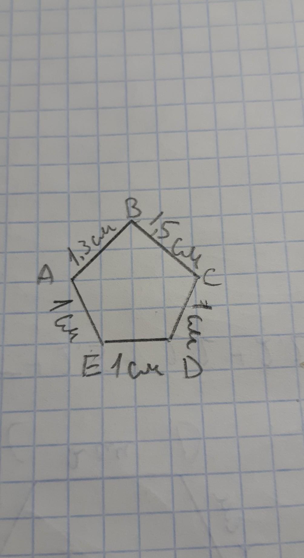 Начертите в тетради пятиугольник и обозначьте его вершины. Выполнив необходимые измерения, найдите периметр пятиугольника.