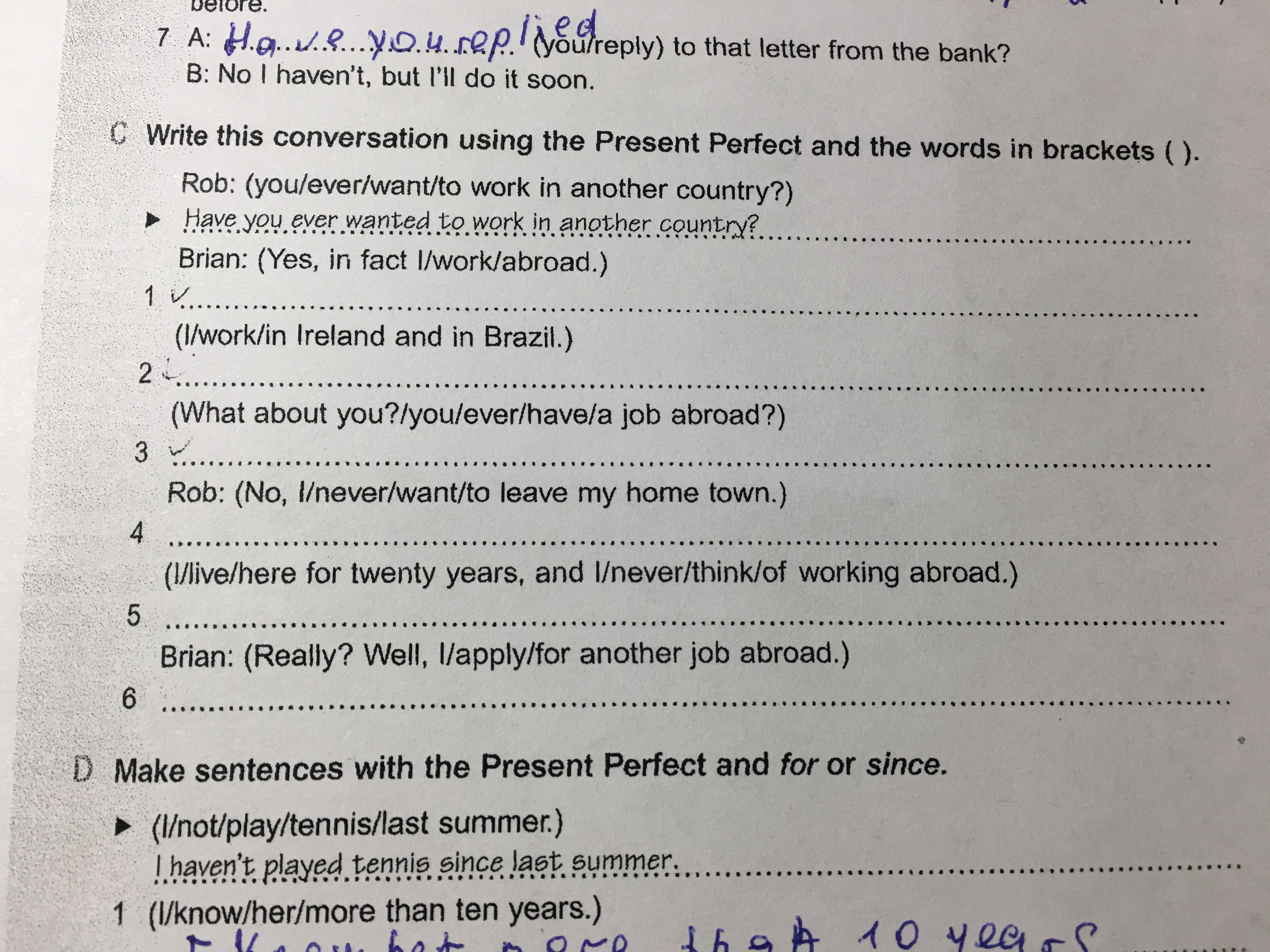 4) I lived here for twenty years, and I never thinked of working abroad.
