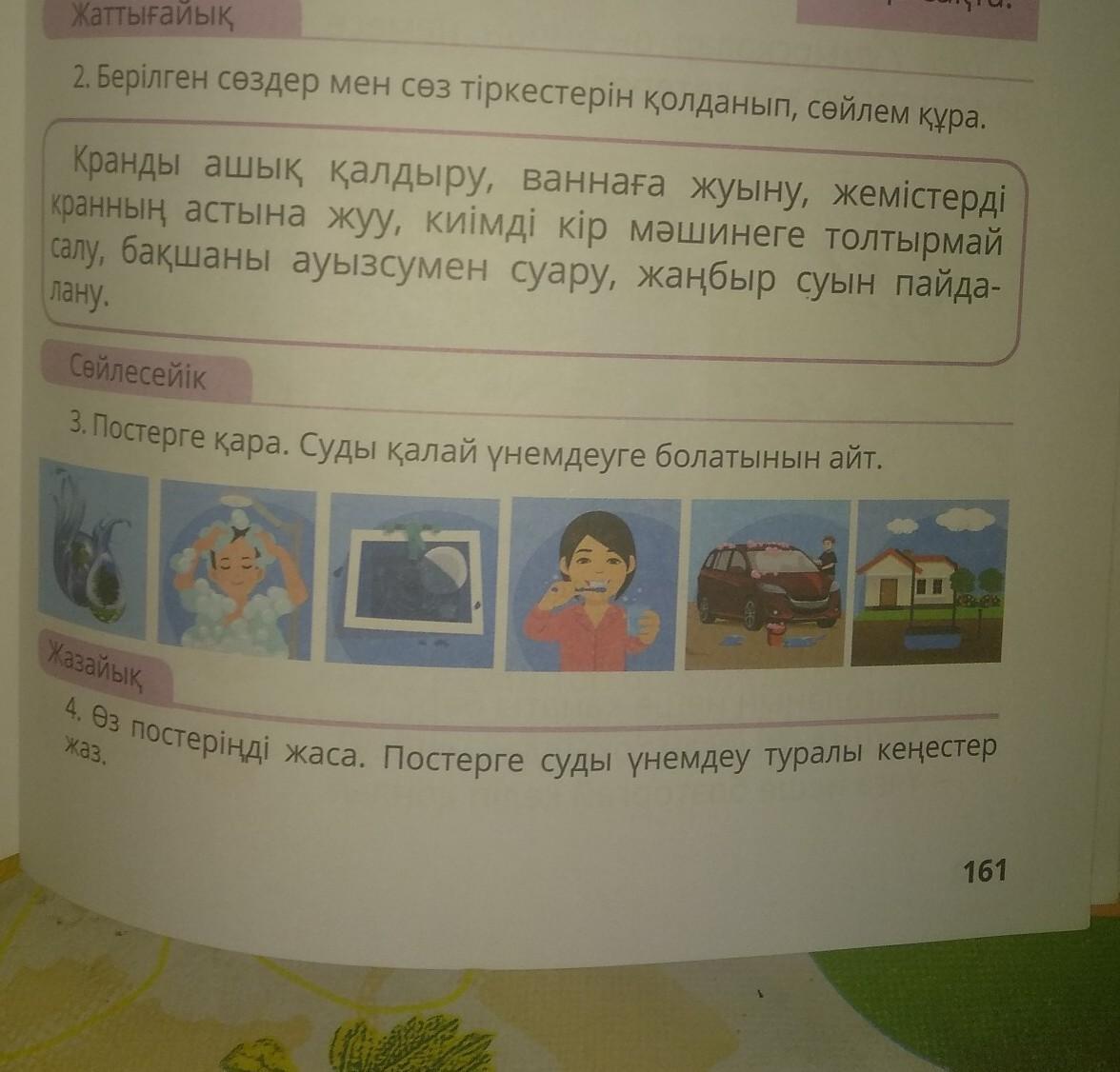Кранды ашық қалдыруға болмайды, үйді су алып кетеді. Күнде жатар алдында ваннаға жуыну керек. Жемістерді кранның астына жуу, суды ысырап қылу. Киімді кір мәшинеге толтырмай жуу, кір мәшиненің тез бұзылмауының бір ережесі. Бақшаны ауыз сумен суару дұрыс емес, аяқсумен суыру керек. Немесе, жаңбыр көп жауатын аймақтарда жаңбыр суын пайдалануға болады.