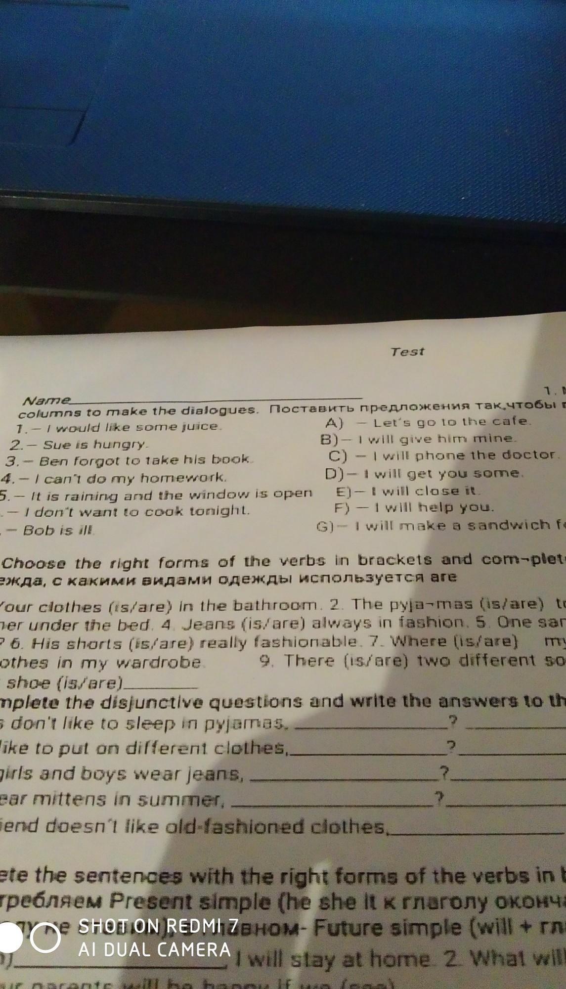 1. - I would like some juice. D) - I will get you some.
