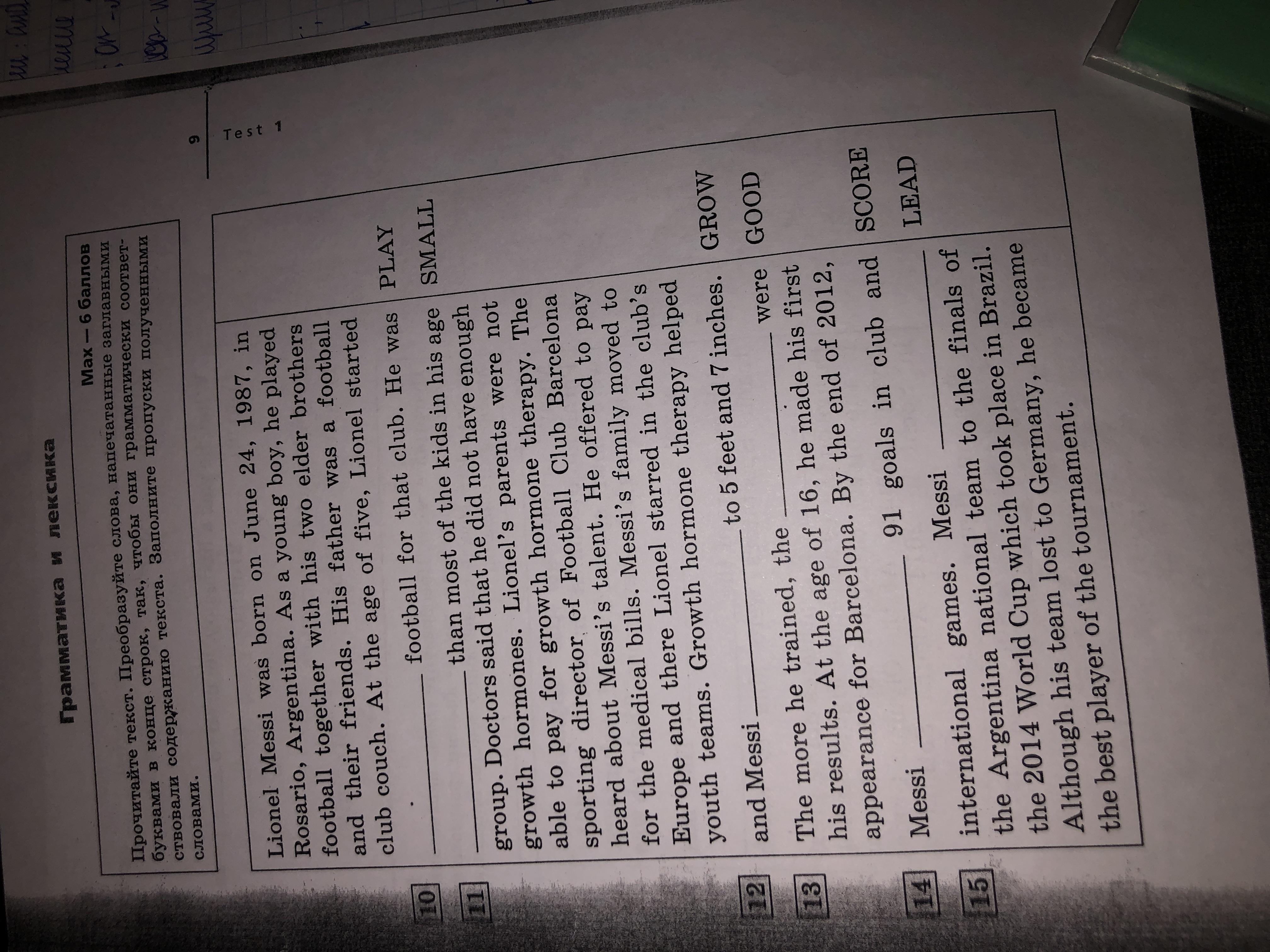 10. playing; 11. smaller; 12. grew; 13. better; 14. had scored; 15. led