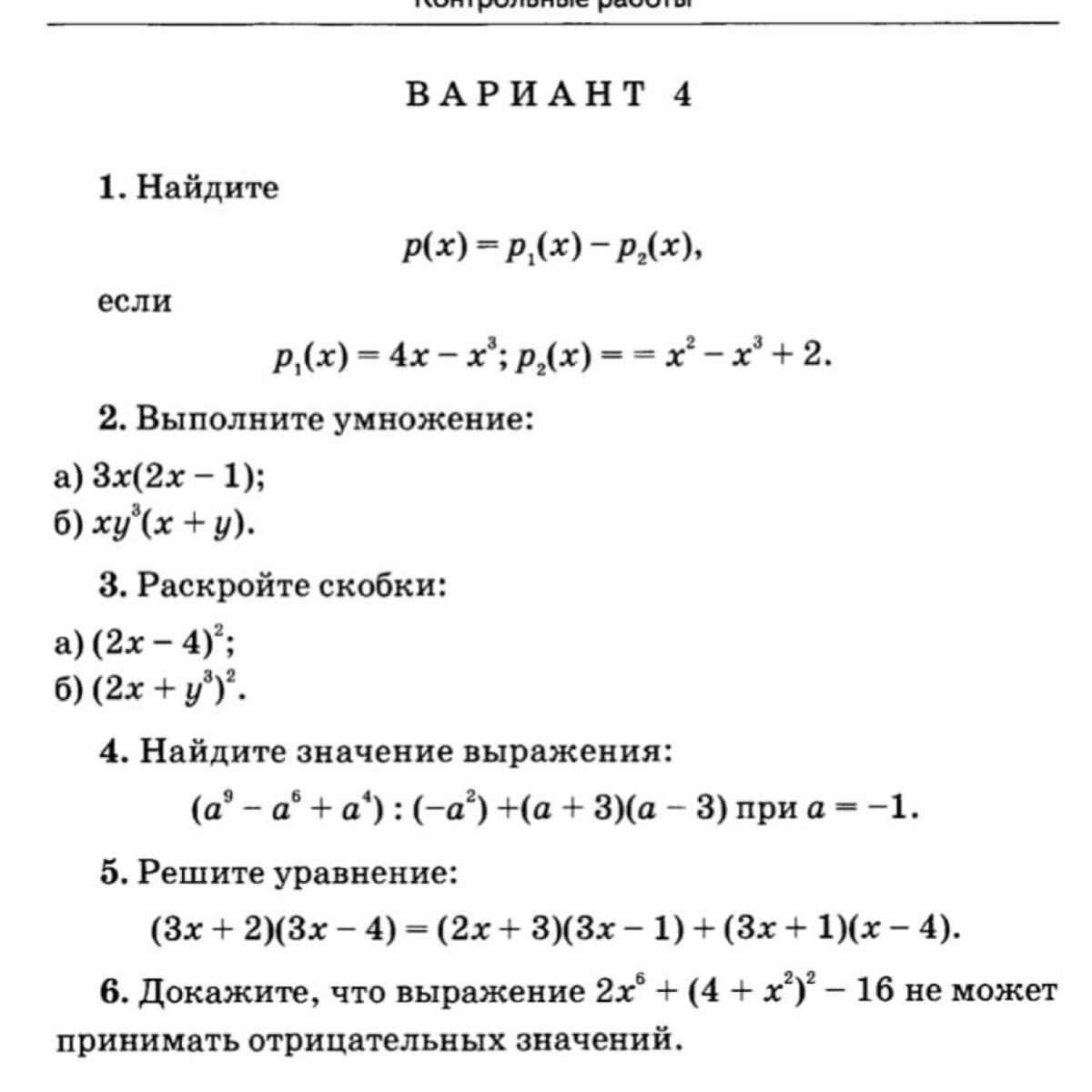 6 задание:2x^6+(4+x^2)^2-16=2x^6+16+8x^2+x4-16=2x^6+8x^2+x^4 это выражение всегда будет принимать положительные значения так как все известные множетели положительные а у переменных степень четная.