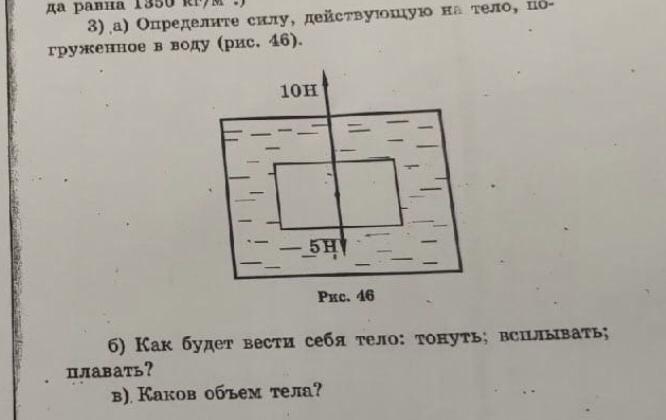а) определите силу действующую на тело погруженное в воду б) как будет вести сеья тело тонуть вспоывать плавать? в) каков обьем тела